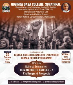 - Govinda Dasa College proud to announce that it has been Re-accredited with a CGPA of 3.14 on a Four Point Scale at ‘A’ Grade in the IV Cycle from the NAAC affiliated to Mangalore University, Managed by H.V.Sangha.