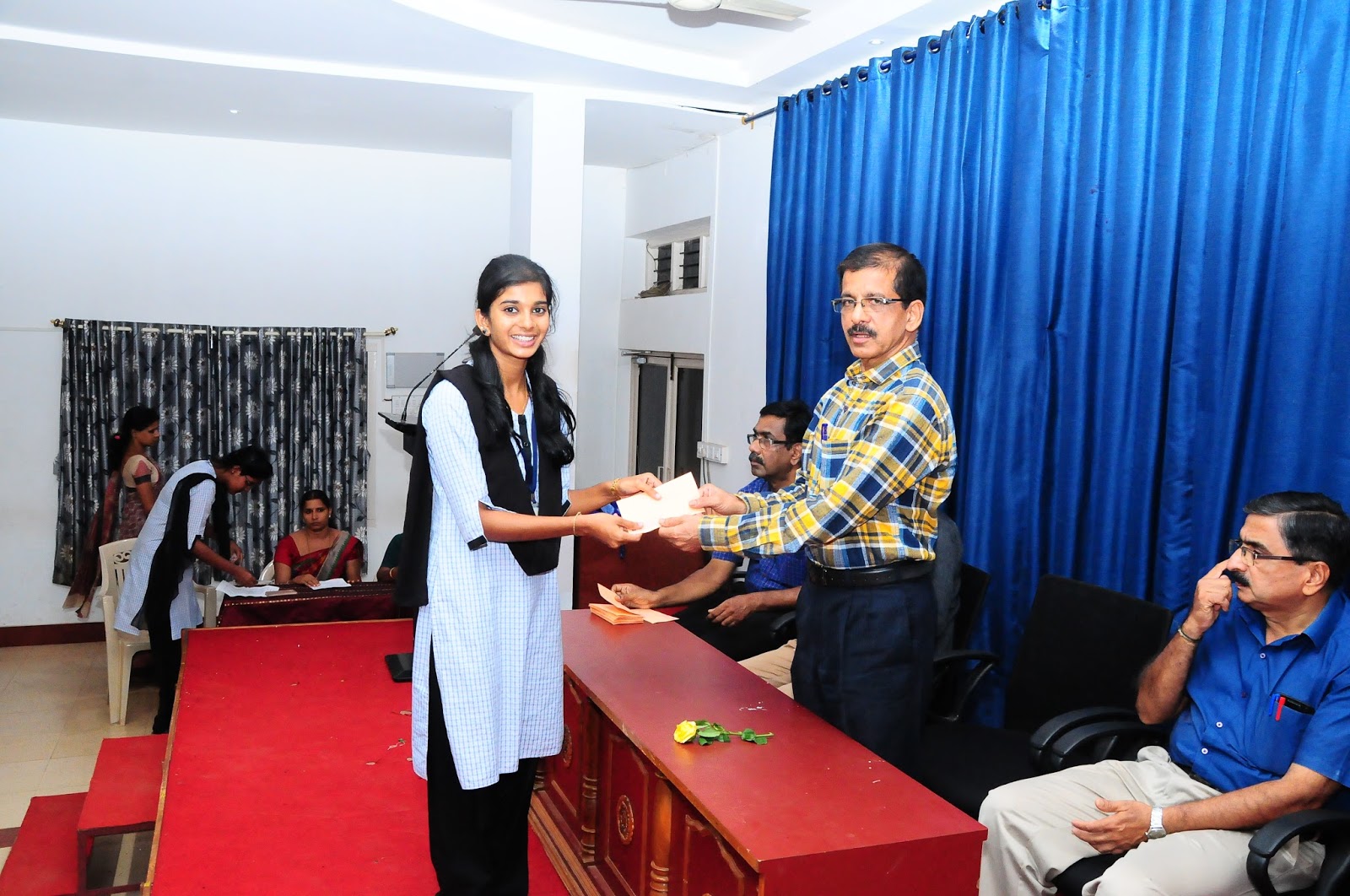 A programme was held at the Audio Visual Hall of the Govinda Dasa College on 23 March 2018 to distribute various scholarships to the meritorious and need based students. The parents of the students also took part in that programme. The Principal of the College, Dr. B. Muralidhar Rao presided over the function. Dr. Sureshramana Mayya, the Director of the Department of Post Graduate Studies and Research of the College was the Chief Guest and distributed the scholarships. He appreciated the students for their exemplary merits to get assistance from the College. He also appealed the students who got scholarships to continue their studies in the Post Graduate Department of the College. Prof. P. Krishnamurthi, Vice Principal of the College welcomed the guests and introduced the Chief Guest. Prof. Mulalidhar Rao, Principal of the College complimented the students for their golden behaviour during the ensuing year and appealed them to contribute their best to the society. Dr. K. Shivashankar Bhat, the Head of the Department of the Economics and Coordinator of IQAC thanked the orgnainisors, parents and students for their whole hearted support. Prof. Violet Miranda, Associate Professor, Dean, Faculty of Arts, H.O.D.,SWO of the College coordinated the programme and read out the list of scholarship holders. LCdr Sudha U, Head, Department of Political Science compered the programme. Ms. Ashalatha and many other faculty members attended the programme. Mr. Shailraj, PG Centre Office, provided logistic support to the programme.