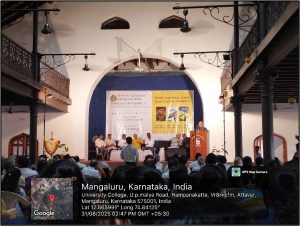 On August 31, 2025, NSS volunteers of Govinda Dasa College participated in a book release programme held at Ravindra Kalabhavana, University College, Mangalore. The event was organized in collaboration with Mahatma Gandhi Shanti Pratishthana, Mangalore, to launch the Kannada translation of the book “Subhas Chandra Bose,” translated by Prof. K.E. Radhakrishna.