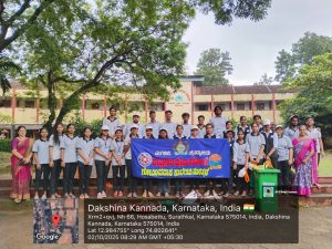 The formal program began with a welcome address by Mrs. Akshatha V, NSS Programme Officer. The Chief Guest for the occasion, Sri. Shrikanth Shetty B, delivered an inspiring speech highlighting the life and principles of Mahatma Gandhi and Lal Bahadur Shastri, both of whom share the birth anniversary on this day. He emphasized the relevance of their ideals in today’s world and encouraged students to follow the path of truth, simplicity, and patriotism.