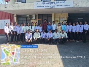 The M.Sc. Chemistry students, along with the faculty members, visited Westtek Enterprises Private Limited, Manipal, as part of their industrial visit. Mr. Sudarshan, Head of the Production Department, explained the ink preparation process in detail. He also demonstrated and described the various instruments used for ink analysis.