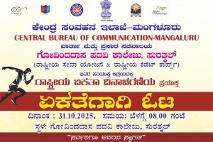 The “Run for Unity” program was organized by the NCC unit of the college in association with the Central Bureau of Communication, Mangaluru, on 31/10/2025. The program was inaugurated by the Director of Administration, Prof. Ramesh Bhat, and the Principal of the college, Prof. Hareesha Acharya. Mr. Rohith G. S., Field Publicity Officer, CBC Mangaluru, addressed the students. A total of 46 NCC cadets participated in the program. The event was organized under the guidance of Major Dr. Sudha Shetty.