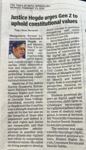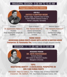 - Dr. Anita Ravishankar, former Director of the UGC Centre for Women’s Studies at Mangalore University, spoke on “Negotiating Identity: A Sociological Perspective on Gen-Z and Human Rights,” addressing issues of identity, gender, and social transformation.