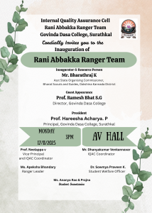 The Rovers and Rangers Unit of Govinda Dasa College, Surathkal, inaugurated its activities on 17th November 2025 at 3:00 PM in the AV Hall, marking the commencement of a new cycle of student engagement in leadership and service.