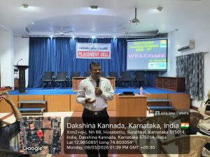 A career guidance programme titled “A Pathway After Graduation” was organized to guide students about the various opportunities available after completing their undergraduate studies. The programme was held in the AV Hall at 1.30 p.m. The resource person for the session was Suresh MS, Director of Sarvajna IAS Academy, Pumpwell, Mangalore.